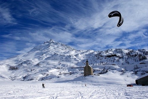 Położone w Południowym Tyrolu jezioro Resia ma aż sześć kilometrów długości i dzięki wieloletniej popularności śmiało można to miejsce nazwać mekką snowkiterów. Zamarznięte jezioro jest idealnym spotem do jazdy z latawcem, gdyż nie ma ryzyka związanego ze zderzeniem np. z drzewem czy przewodami elektrycznymi. W jednym miejscu z jeziora wystaje romańska wieża kościelna – pozostałość po zalanej wsi. Ponadto wielkorotnie rozgrywane były tutaj mistrzostwa w snowkitingu. W styczniu i lutym organizowane są dwudniowe kursy z noclegiem i śniadaniem w cenie 255 euro (włącznie ze sprzętem i nauką). www.kiteboarding-reschen.eu